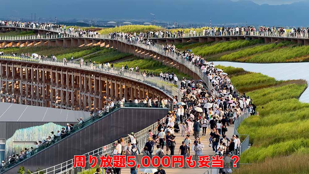 大屋根を歩き、花火やドローンに見とれ、一日で3万円分の記憶を抱えて帰ることだってある。